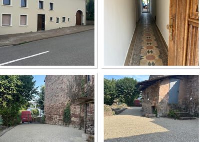 Das Haus umfasst zwei miteinander verbundene Wohneinheiten, mehrere Zugänge sowie großzügige Parkflächen (insgesamt bis zu 8 Stellplätze und Garage für 2–3 Fahrzeuge).