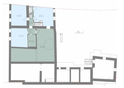 Die Hauptwohneinheit überzeugt mit einem hellen Wohn- und Essbereich, moderner Küche, großer Terrasse (ca. 36 m²) und vier geräumigen Schlafzimmern. Die zweite Einheit bietet Büroräume, Bad, Weinkeller und direkten Zugang zur Garage.